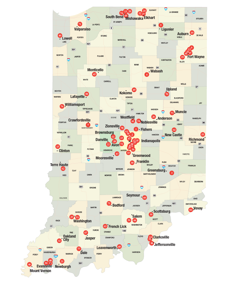 25. Eastgate Manor Nursing and Rehabilitation52. Riverside Village78. Zionsville Meadows